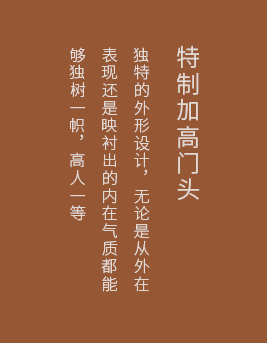 | 秉承中國“藏風聚福”的傳統理念,研發出特殊的設計工藝,無需更改門洞尺寸,加高門框處理,添財納吉祥、五福入豪門 |